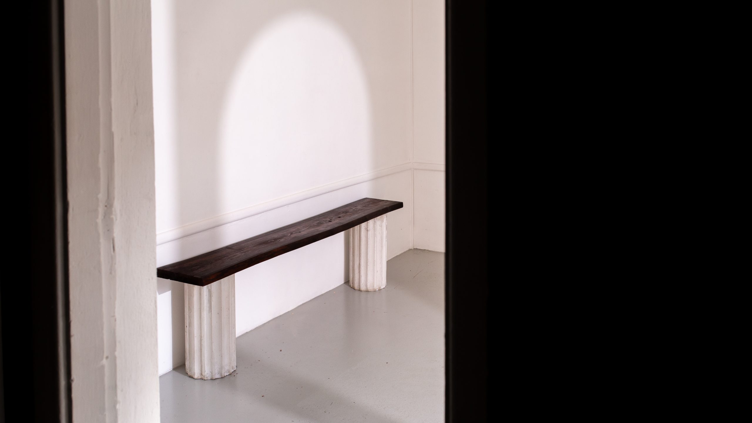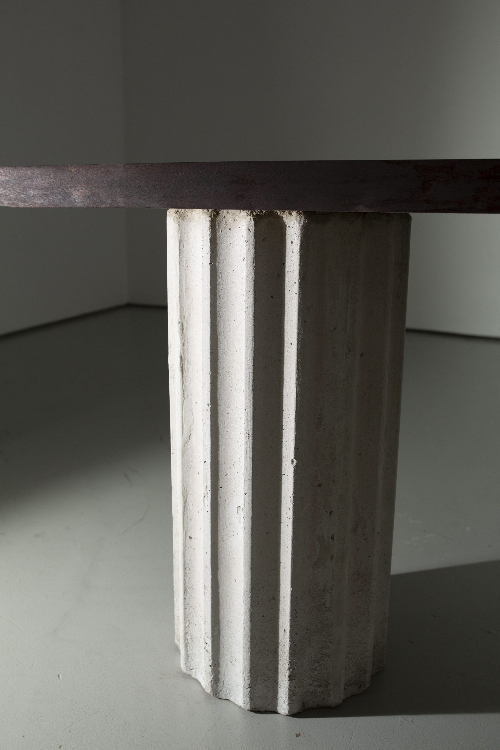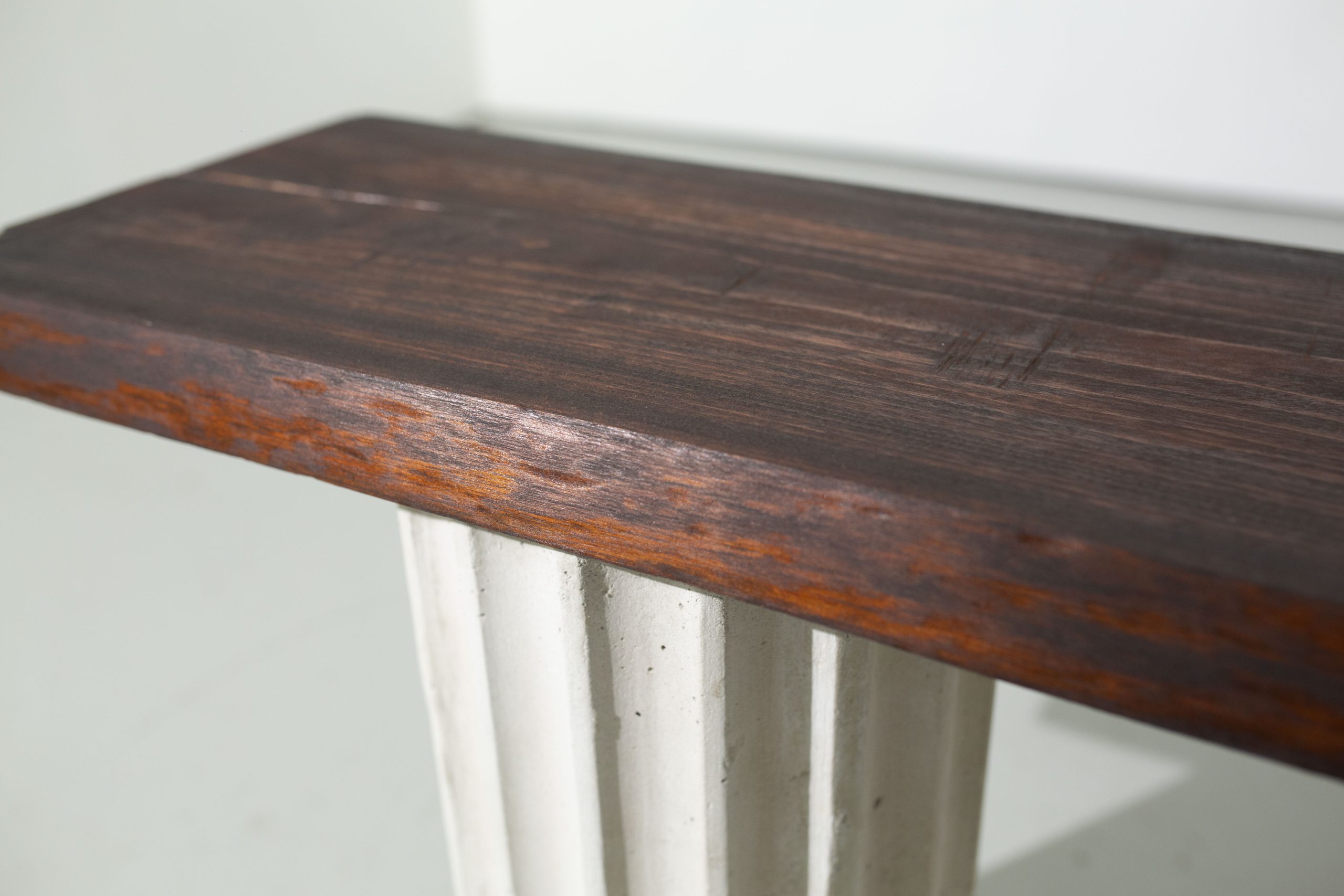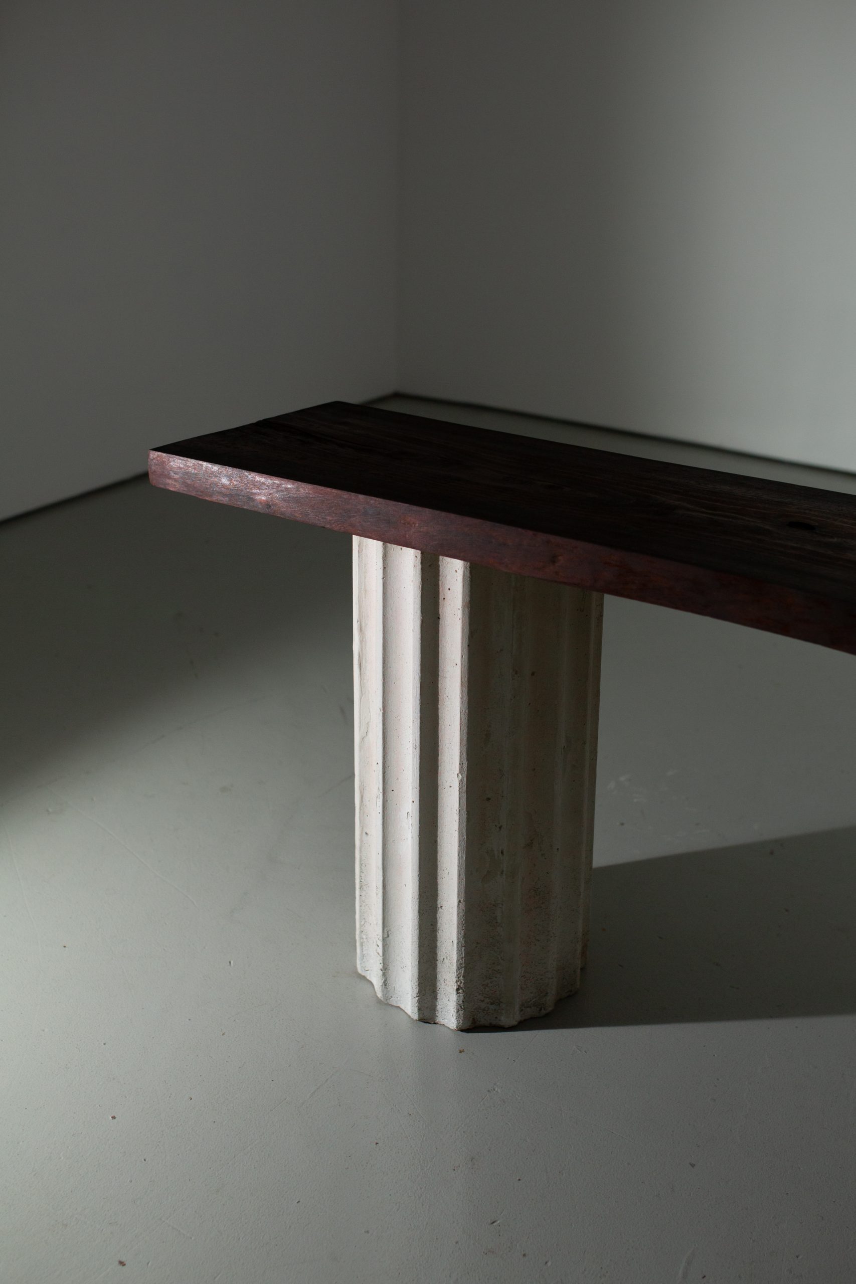 Assembled from recycled concrete columns and Beautiful reclaimed camphor laurel timber. Camphor laurel features the characteristic camphor smell that repels moths and other insects, making it perfect for internal furniture.